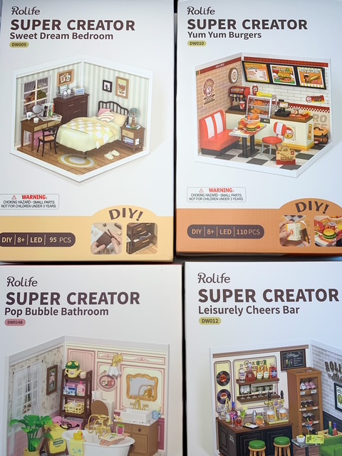 I have been thinking of this project for YEARS. I imagined it as a child, drew plans as an adult and knew how I wanted it to look. It wasn’t until just recently, when I saw the Rolife Super Creator Kits, I thought these kits might be perfect for what I wanted to achieve! This project/post was not sponsored by Robotime but I really love these kits. They are so well made and were easy to put together. Everything fit perfectly with no glue or mess. They came with easy instructions and they even light up!