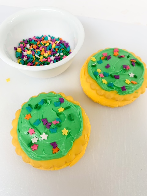 - Next sprinkle the flower sprinkles on top of the buttercream.
