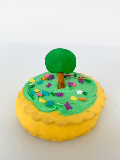 Sandy’s Tree Dome Moon Pies are so fun and easy to make! This no-bake treat starts off with store-bought Moon Pies and frosted with green buttercream. Fun to decorate and makes a great activity for kids at a SpongeBob themed party!